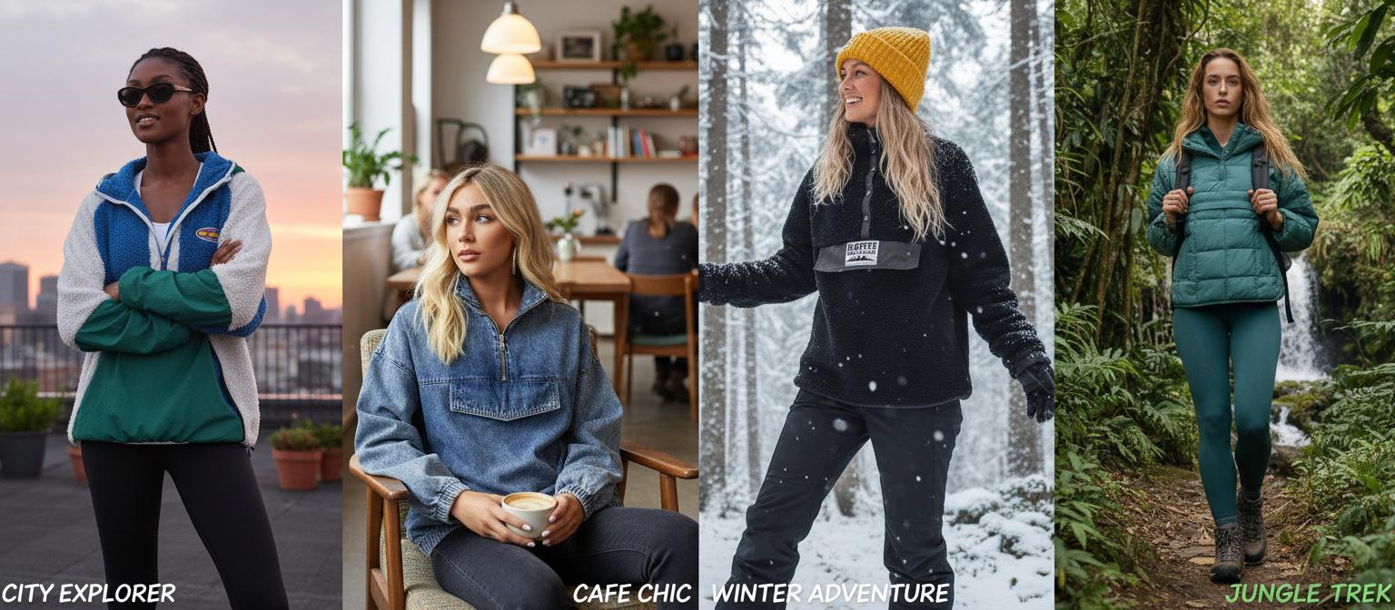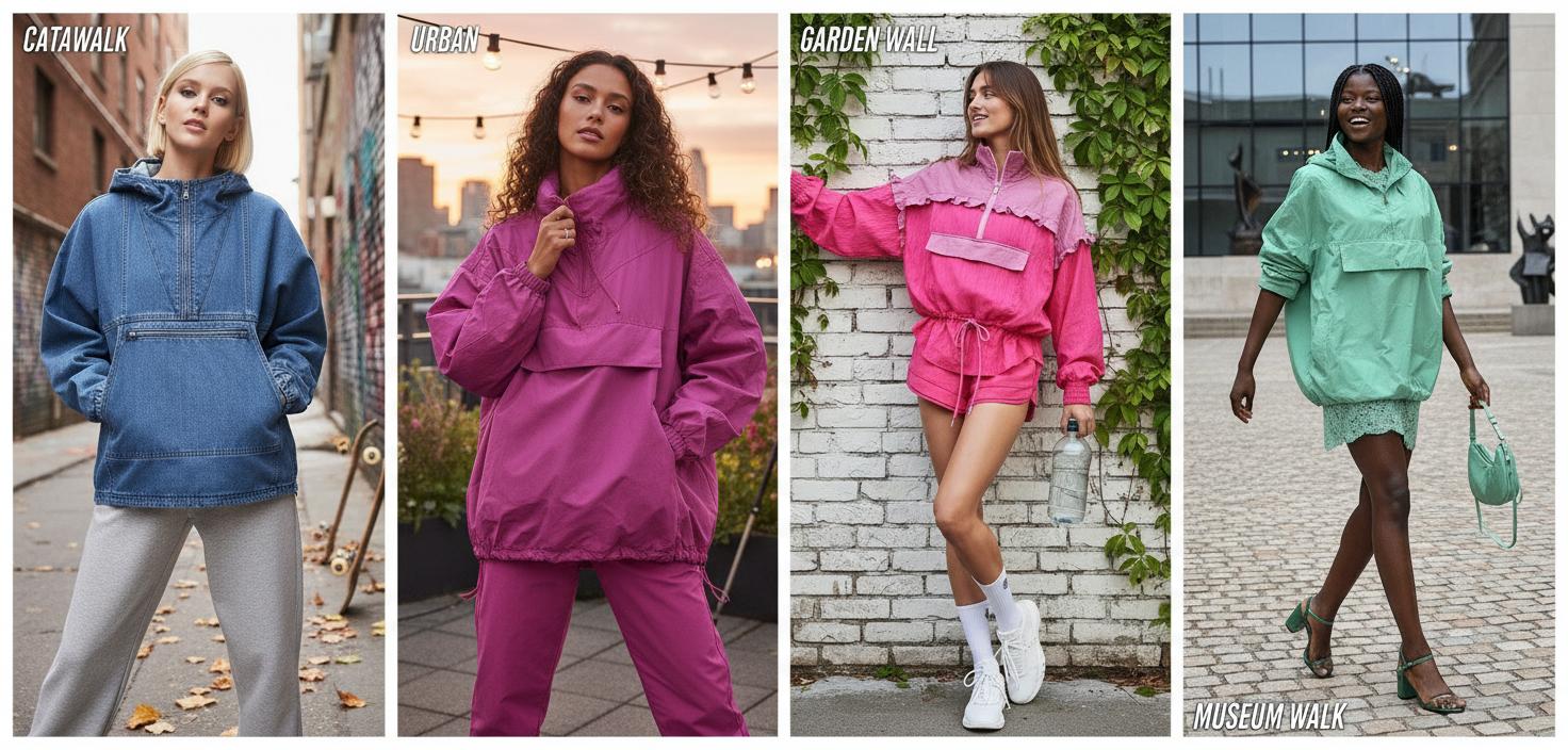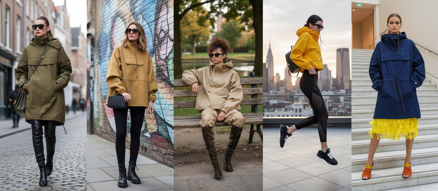 Oversize анорак + широкие брюки + массивные кроссовки = стиль уличного модника. Бонусом добавляем шапку-бини или панаму — и вы уже выглядите так, будто идёте на съёмки клипа.