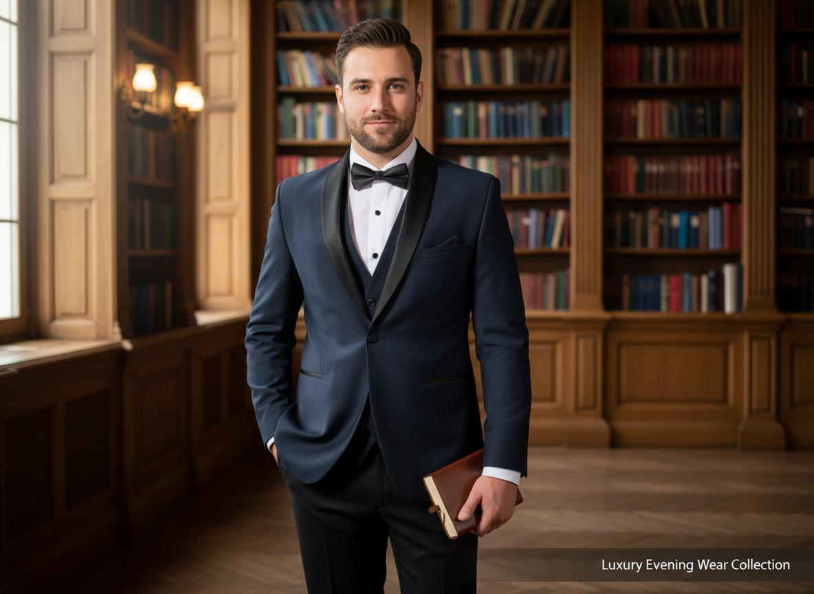 Смокинг: традиционно смокинг представлен в черном или темно-синем цвете. Эти оттенки подчеркивают строгость и торжественность образа, что делает смокинг идеальным выбором для мероприятий с дресс-кодом “Black Tie”. Однако современные дизайнеры предлагают смокинги и в других глубоких оттенках, таких как изумрудный, бордовый или темно-фиолетовый, но они используются только для менее консервативных мероприятий. Белый смокинг также встречается, но его носят преимущественно летом или на открытых торжествах.