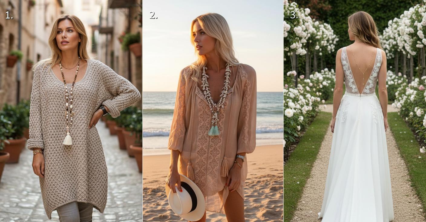 В стиле бохо сотуар становится незаменимым аксессуаром. Украшения с деревянными бусинами, тканевыми элементами и перьями прекрасно сочетаются с летними сарафанами, юбками в пол и блузами с вышивкой. Добавьте кожаные браслеты или серьги с натуральными камнями для завершения образа.