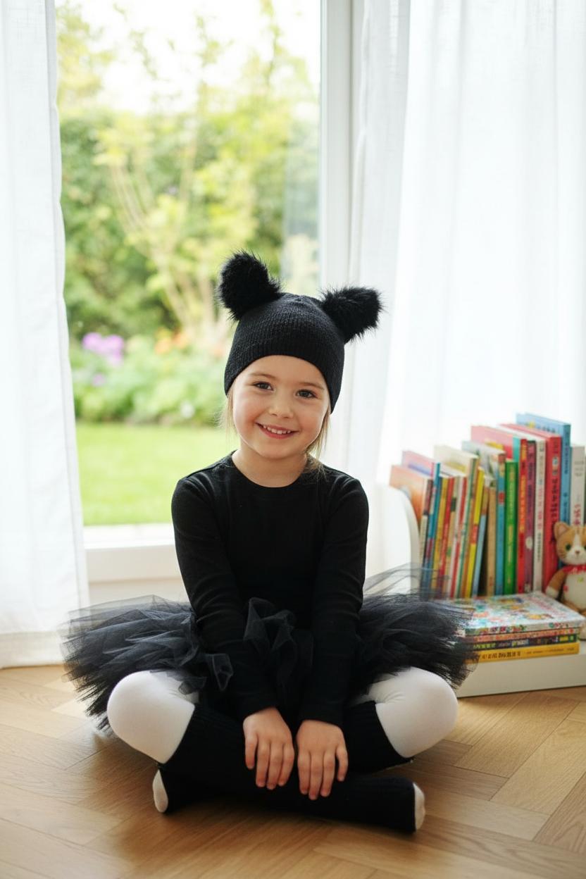 - Костюм кошки на Новый год. Девочкам подойдет новогодний костюм кошки, тем более, что это второй символ наступающего года. Для того, чтобы создать образ, можно использовать бриджи, фатиновую пышную юбку, носочки и перчатки. Ушки и хвост шьют из искусственного меха. Крепят ушки на ободок или в прическу, хвост пришивают к юбке, а перчатки и носочки обшивают тем же самым мехом, из которого шили ушки и хвост;