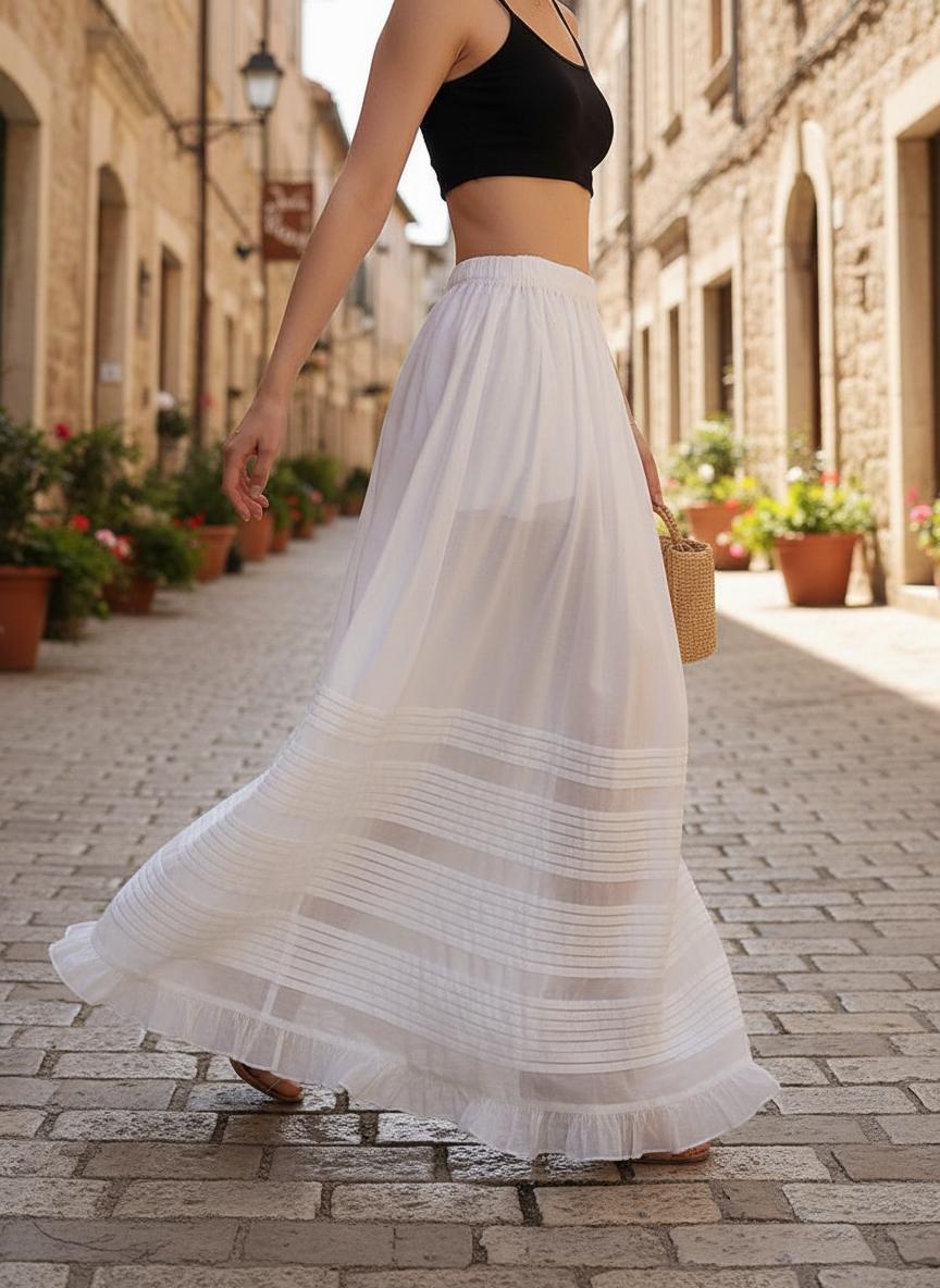 Пример из жизни: у меня есть лёгкая хлопковая юбка-солнце. Без подъюбника она всегда «прилипала» к ногам, и образ выглядел не так, как задумывалось. Стоило добавить простой тонкий подъюбник из батиста — и проблема исчезла. Юбка ожила, заиграла, а я перестала мучиться.
