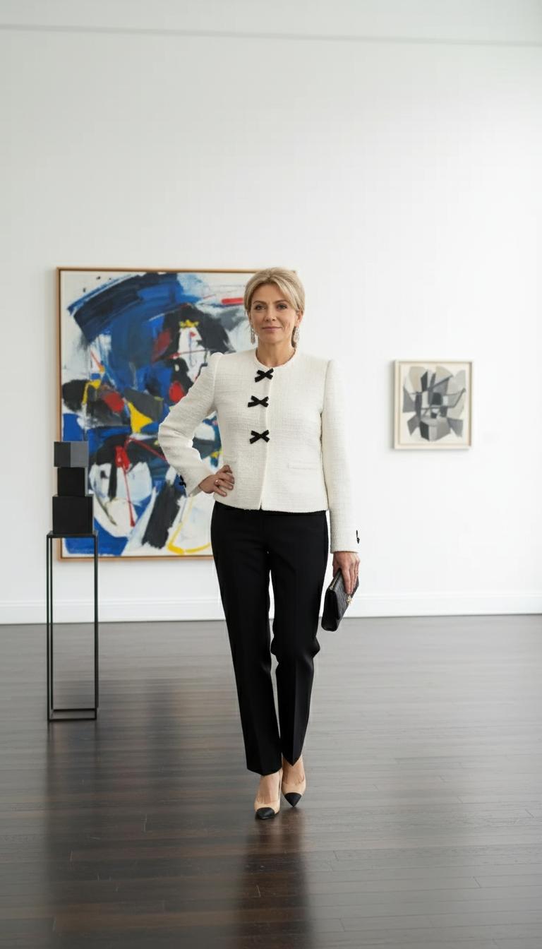 Иногда проще всего понять, как работать с базовыми рекомендациями, если увидеть реальные примеры. Образы, которые мы выбрали, подойдут для различных случаев жизни, будь то повседневный выход, работа или вечерняя встреча. Рассмотрим несколько универсальных вариантов, которые легко адаптируются к любому стилю жизни женщины после 40.