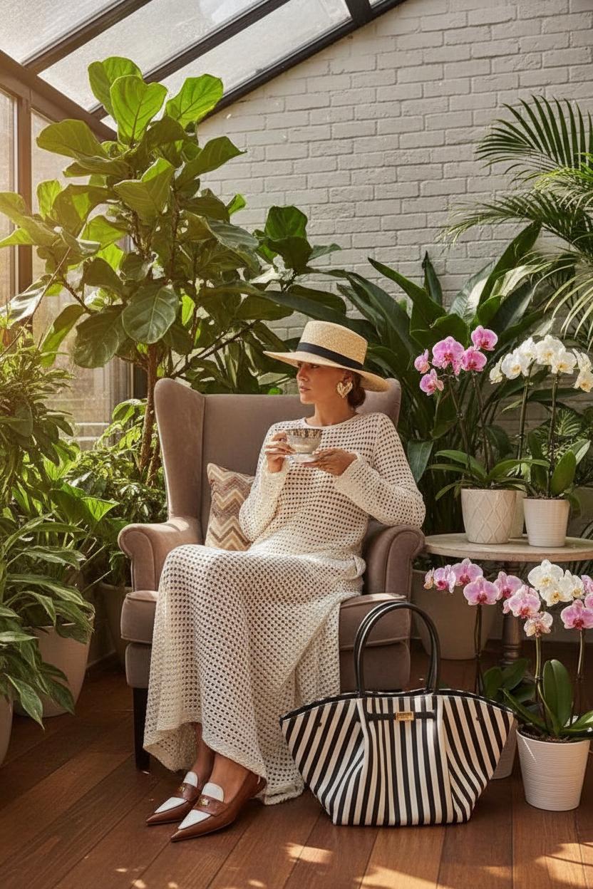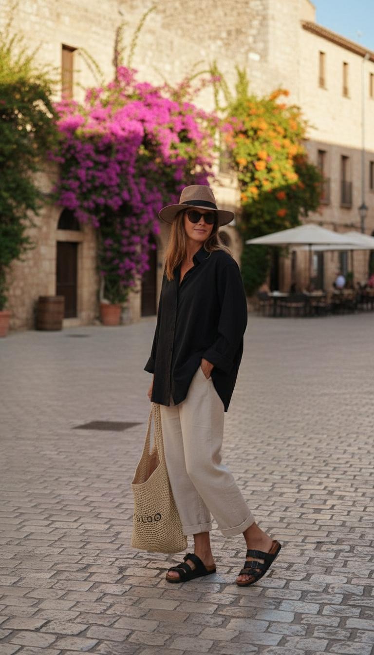 Отдых или выходные. Легкое платье с цветочным принтом или свободные брюки с топом — комфортный и стильный вариант для отдыха или встреч с близкими. Выбирайте ткани, которые будут хорошо дышать и не мешать двигаться, такие как лен или хлопок. Дополните образ стильной шляпой и солнечными очками, чтобы создать яркий, но не перегруженный образ.