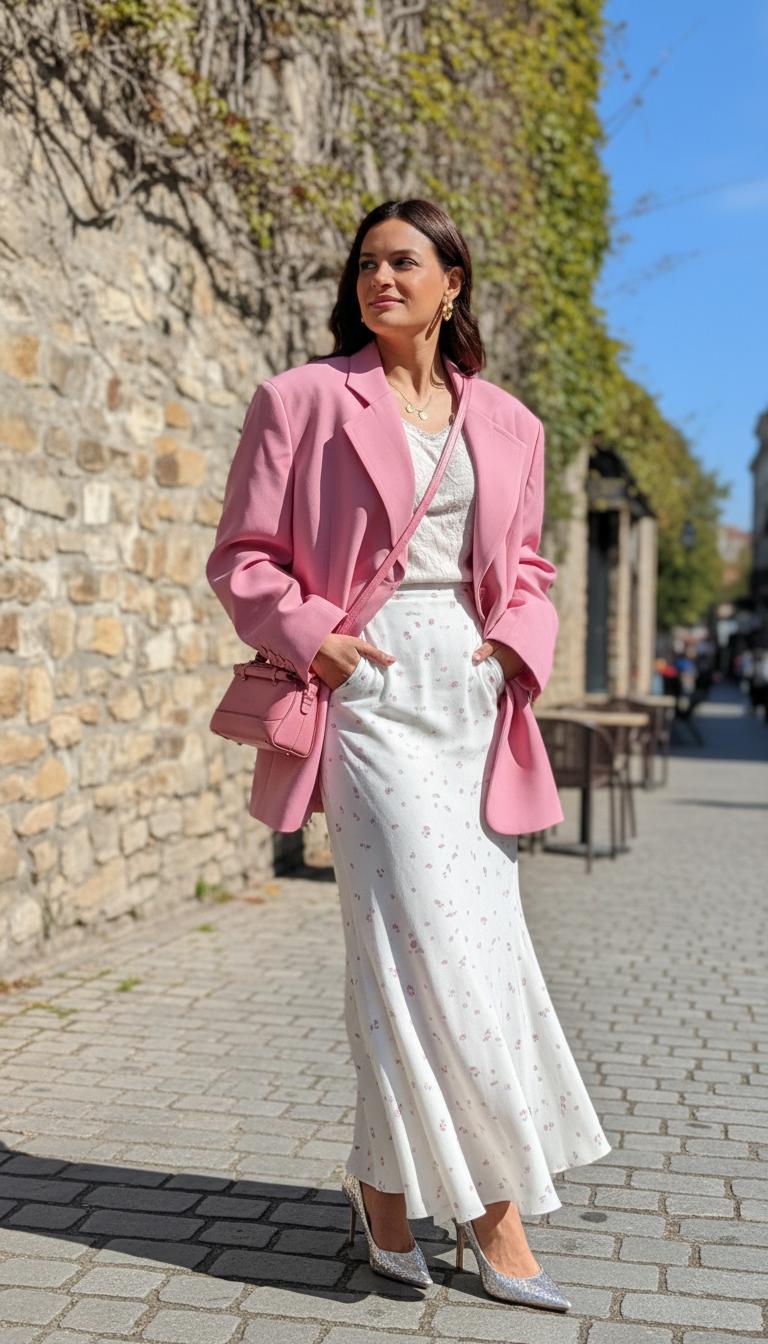 Макси-длины и умеренный оверсайз. Макси-платья или юбки с аккуратным силуэтом создают легкость и элегантность. Также умеренно оверсайз — это отличный способ скрыть недостатки, при этом не выглядеть громоздко. Важно помнить, что оверсайз должен быть сбалансирован с другими элементами одежды, чтобы образ не стал слишком мешковатым.