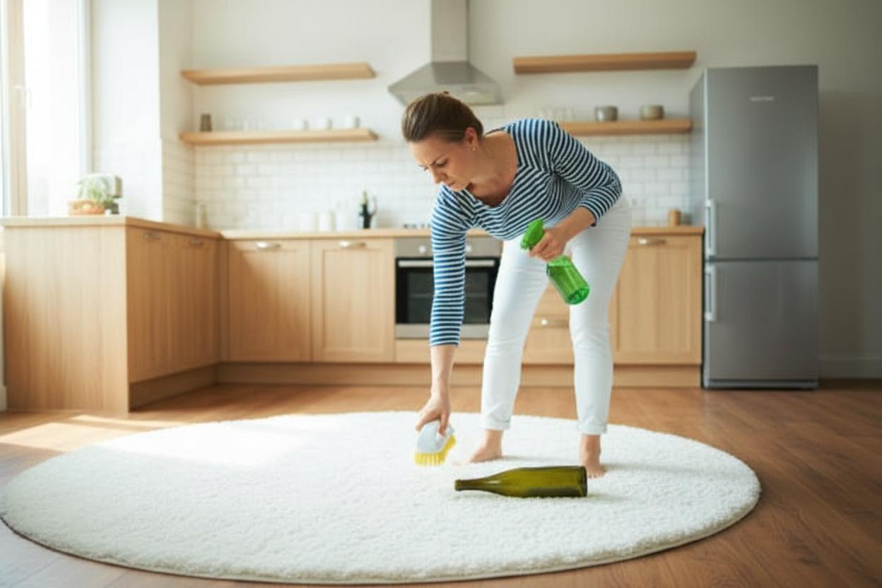 Перед тем, как применять данные средства, нужно изучить состав напольного покрытия. Стирать ковры, как мебель нельзя. Лучше втереть пену, а потом, когда она высохнет, ее пропылесосить. Можно обработать ковры нашатырем, уксусной водой, спиртом или минералкой. Природный краситель разрушается от кислот и щелочей пока он свежий.