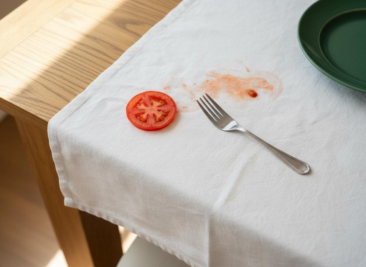 Если пятно от томатного сока старое, то при использовании отбеливателя или народных средств под него нужно подложить чистую хлопковую ткань, а края смочить холодной водой. Таким образом, пятно не расползется и не будет светлого канта вокруг него.