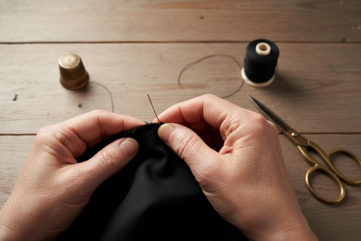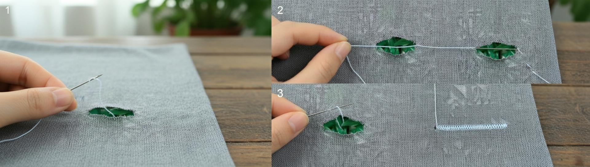 Этот метод — классический выбор для небольших дырок. Если вы подберете нитки в тон ткани и аккуратно выполните шов, повреждение будет практически незаметным.