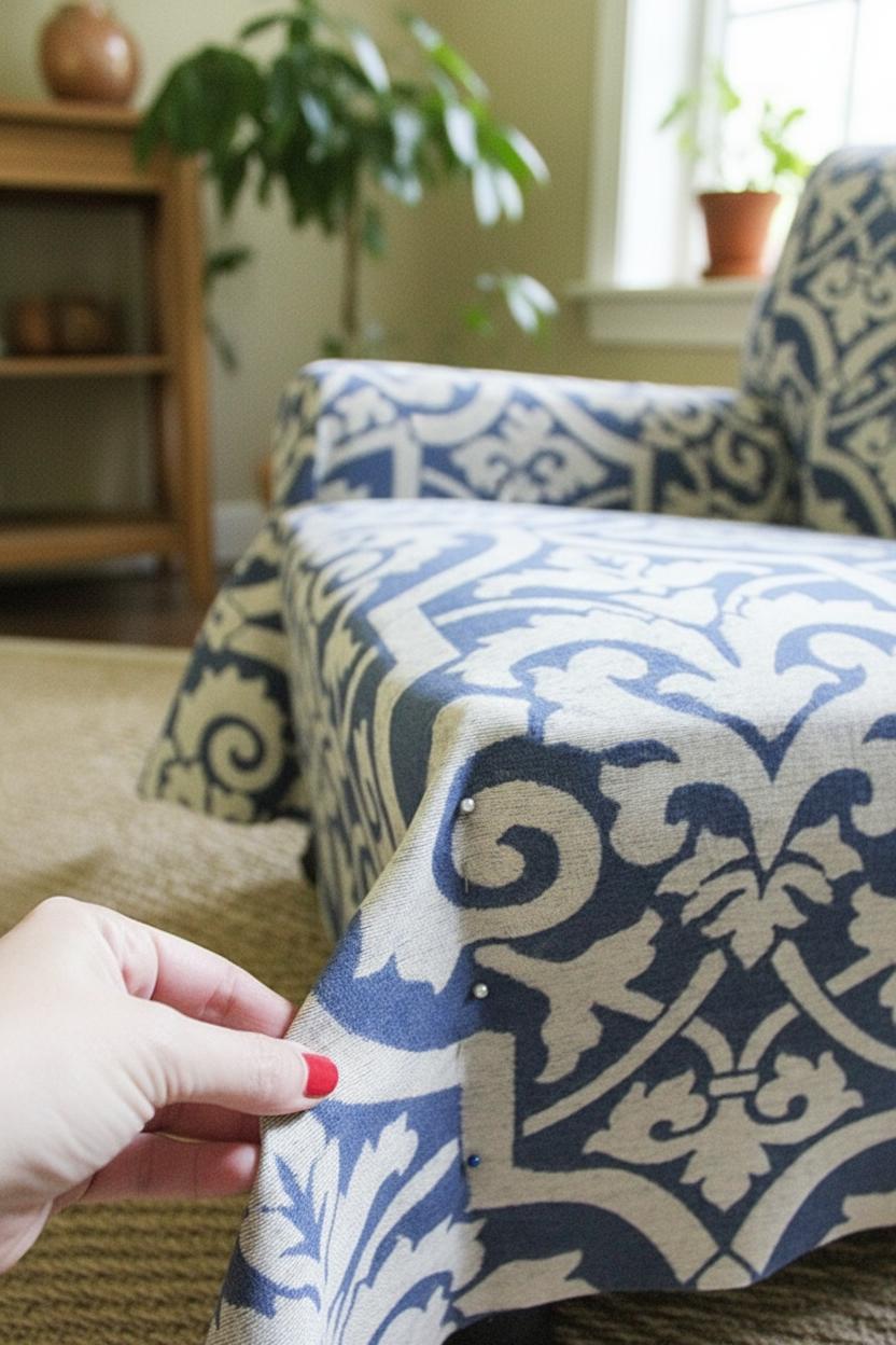 Чтобы сделать раскрой точным, используйте шаблоны, которые вы создали из старой обивки. Шаблоны помогут вам вырезать новые детали обивки с учетом правильной формы и размеров. Расположите шаблоны на ткани так, чтобы они соответствовали направлению волокон. Это важно, чтобы обивка сохраняла свою форму и не деформировалась при обтяжке.