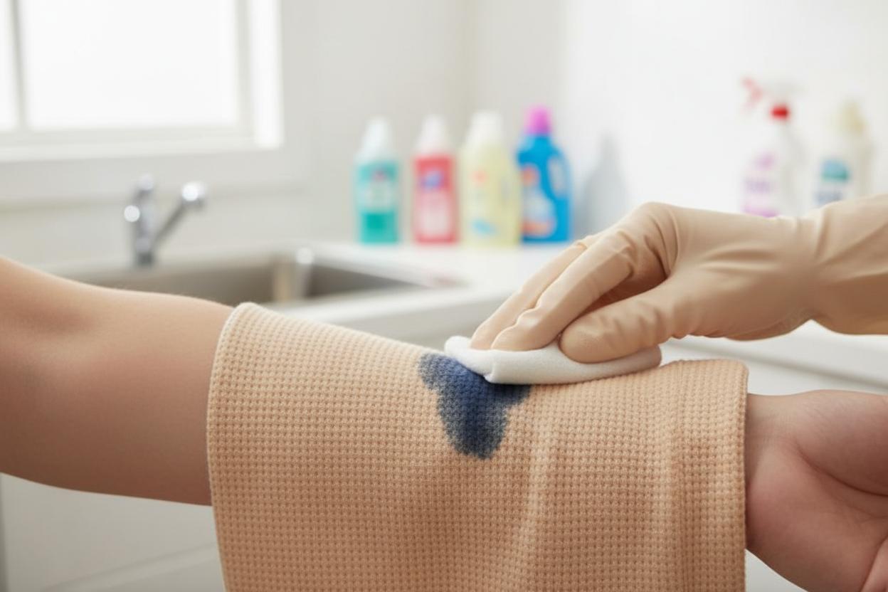 Перед тем, как их применять, нужно провести пробу на небольшом фрагменте ткани лучше всего с изнаночной стороны. Если ткань деликатная, то лучше использовать специальные средства или отнести вещь в химчистку.