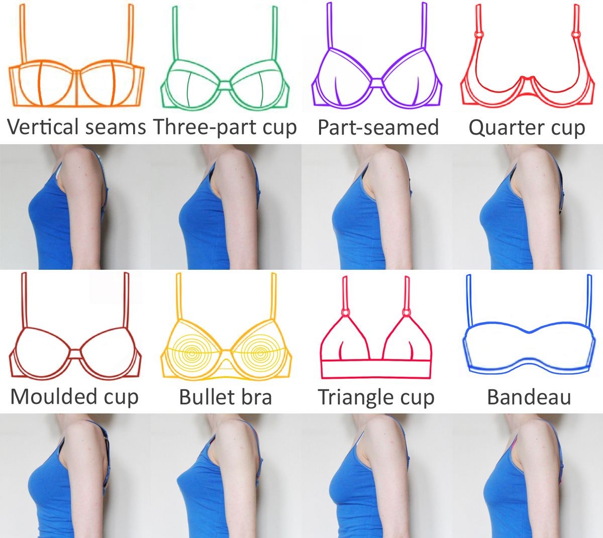 Формованные. Бесшовные, часто с поролоновой вставкой. Отличный вариант под футболку — не видно швов.
