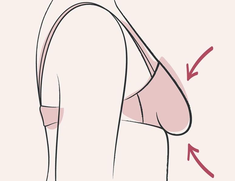 Чашка мала: грудь «вываливается» сверху или сбоку. Решение – увеличить чашку или уменьшить обхват (например, с 80B на 75C).