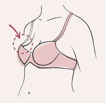 Используйте приём «swoop & scoop»: наклонитесь немного вперёд, рукой аккуратно переместите грудь из подмышечной зоны в чашку. Это помогает занять правильное положение и проверить, хватает ли объёма.