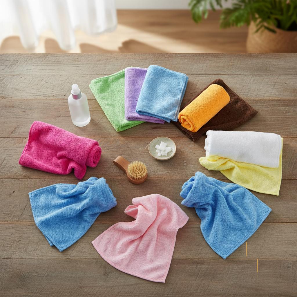 Изделие нельзя кипятить или замачивать в горячей воде. При полоскании можно применять холодную или чуть теплую воду. Стирать изделия разного окраса и состава нужно отдельно. Белая микрофибра может впитать краску с тканых полотен, а на цветной микрофибре остаются мелкие ворсинки от тканых изделий которые забивают ворсовую текстуру ткани.