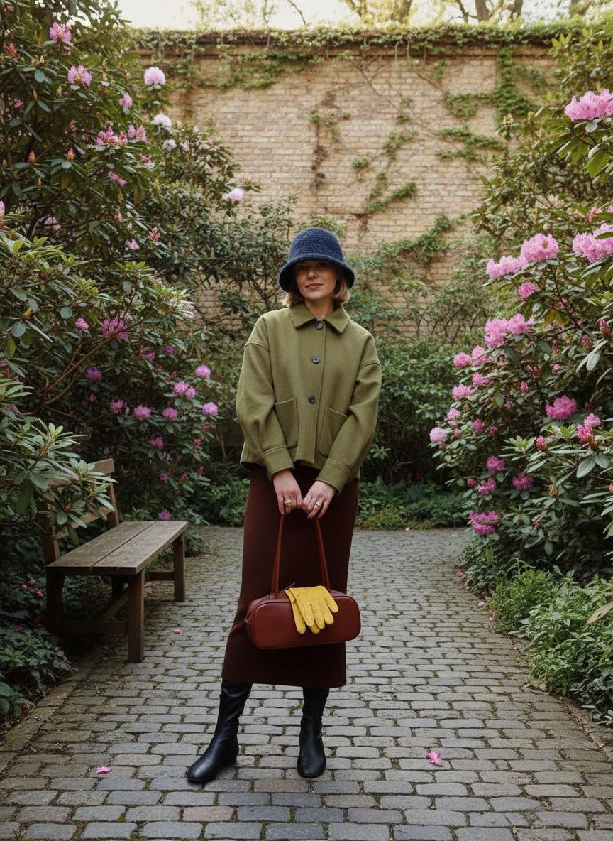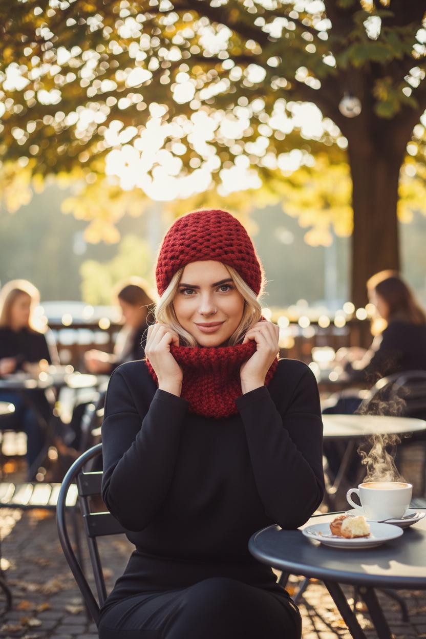 Шапка не должна жить своей жизнью. Она должна дружить с шарфом и перчатками. Самый простой приём — повторить цвет хотя бы в одном аксессуаре. Например, бордовая шапка + бордовые перчатки к чёрному пальто.