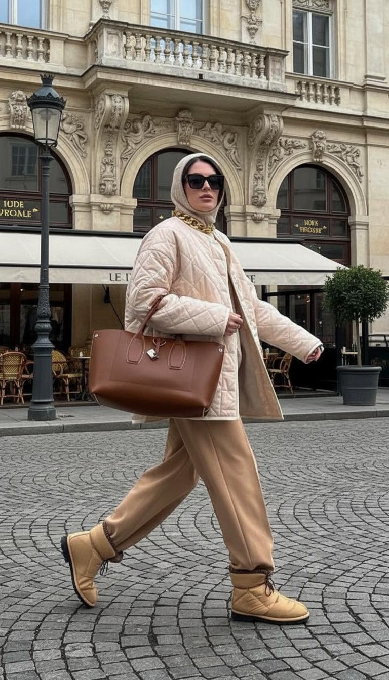 Городской минимализм. Чёрный или бежевый пуховик + базовое бини без логотипов = стильная классика.