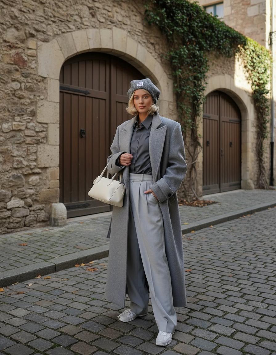 Монохром. Выбираете шапку в тон верхней одежде. Серое пальто + серое бини = безупречный минимализм. Чёрный пуховик + чёрная шапка = классика, которая всегда работает.