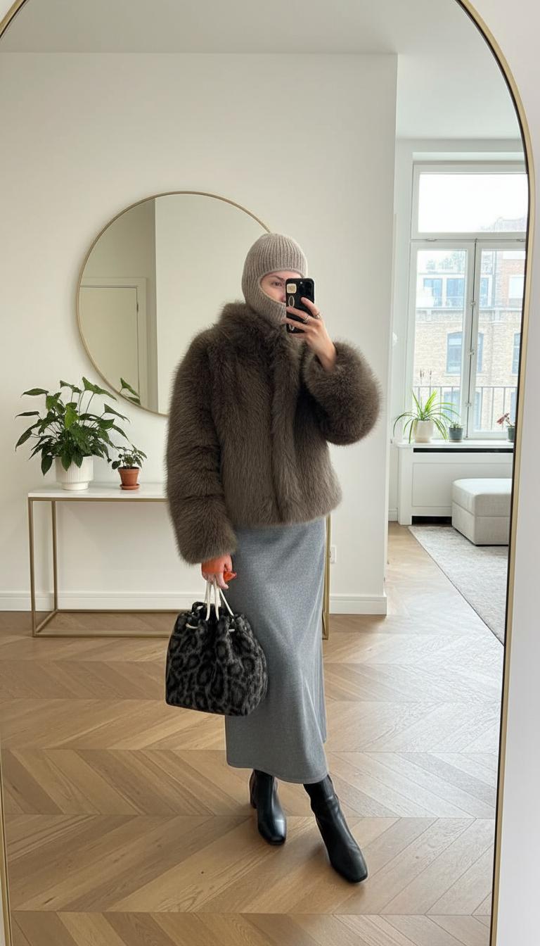 Шуба — это всегда про роскошь. Даже если она эко, выглядит внушительно. Но тут и кроется сложность: какую шапку носить с шубой, чтобы не потеряться и не переборщить? В 2025 году стилисты советуют играть на контрасте фактур и поддерживать баланс объёма.