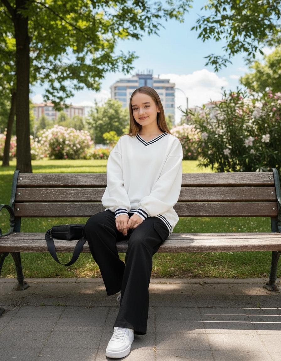 Брюки: прямые, кюлоты или умеренный клёш. Без карго-карманов и «стираных» эффектов. Посадка — средняя, чтобы ничего не давило на уроках.