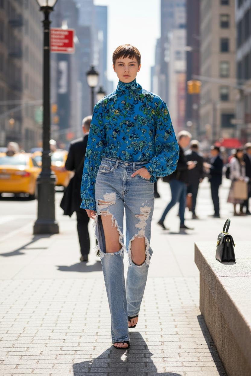 Да, они снова с нами. Но теперь это не про «рванину на коленях», а про аккуратные элементы: сырой край на подоле, лёгкие «царапки» и заплатки в тон.