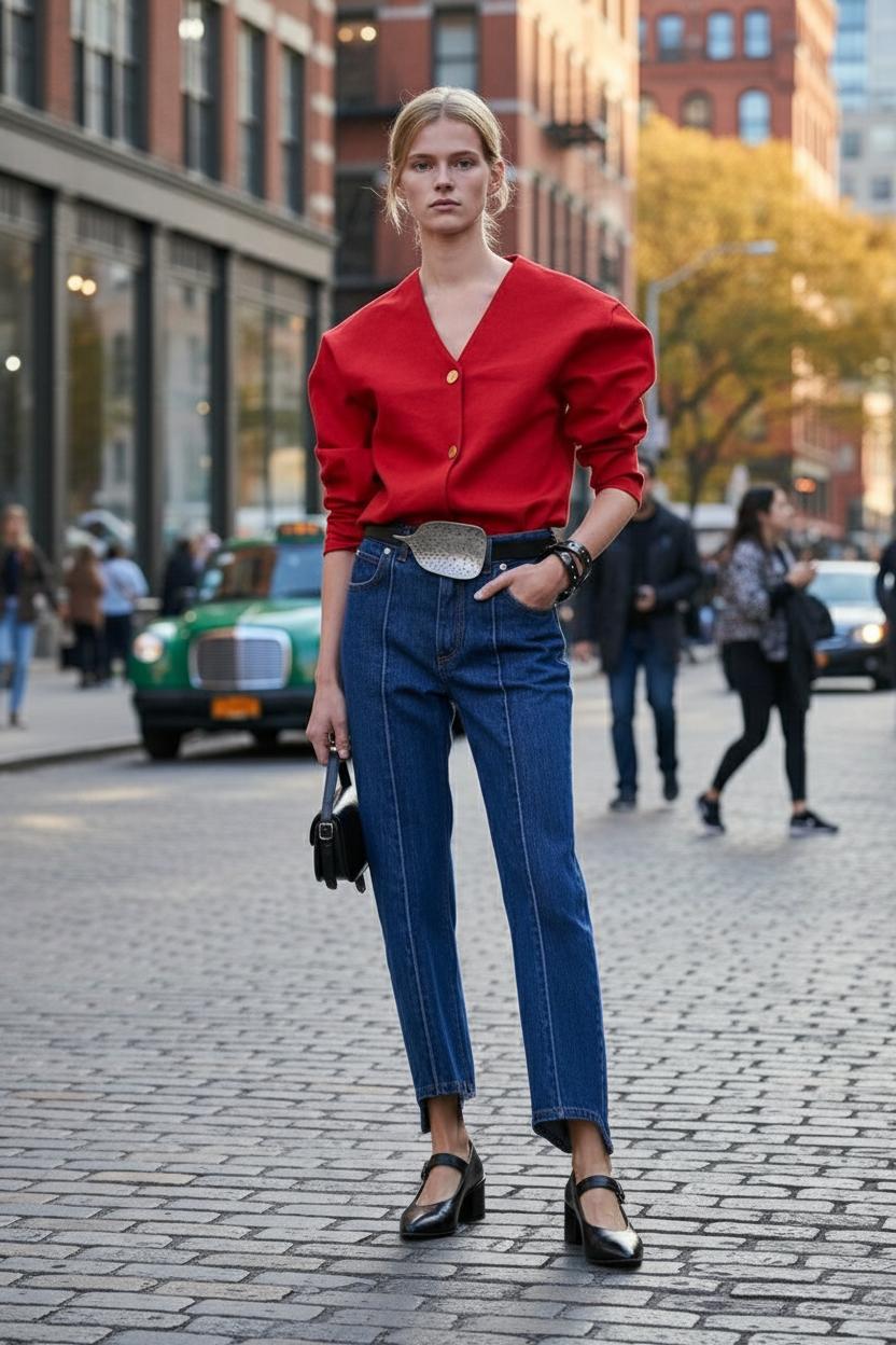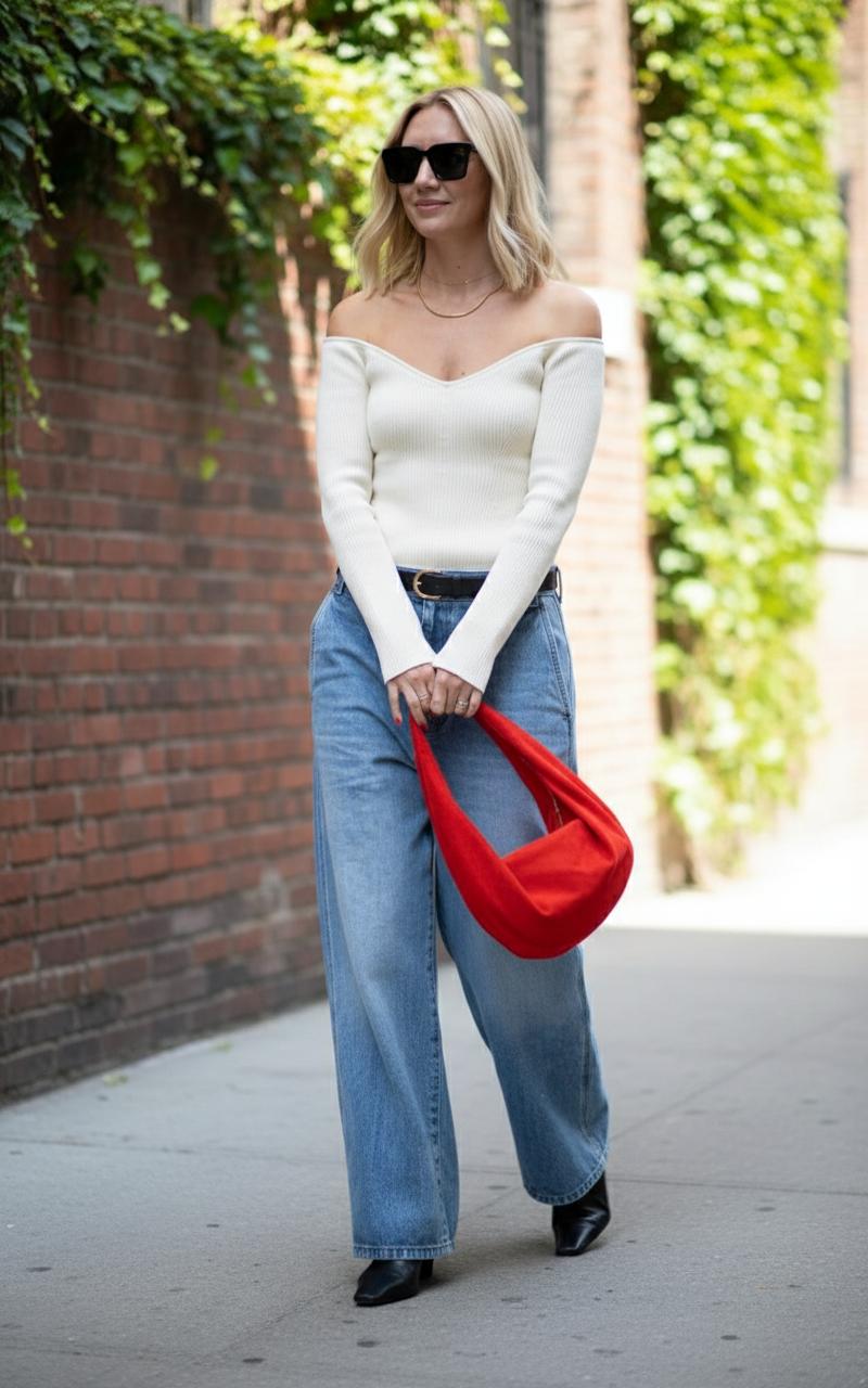 Светлые джинсы добавляют объёма, тёмные — стройнят. Тут без магии: чистая оптика. Если хотите подчеркнуть бёдра — берите молочные или варёные. Если вытянуть силуэт — индиго и графит в помощь.