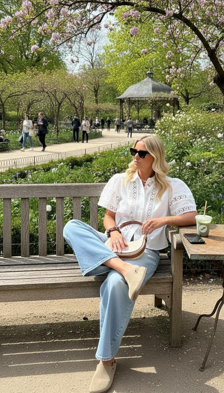 Раньше белые джинсы были «только на лето». В 2025-м – круглый год. Сливочные оттенки, топлёное молоко, ваниль — модный эквивалент фразы «у меня всё под контролем».