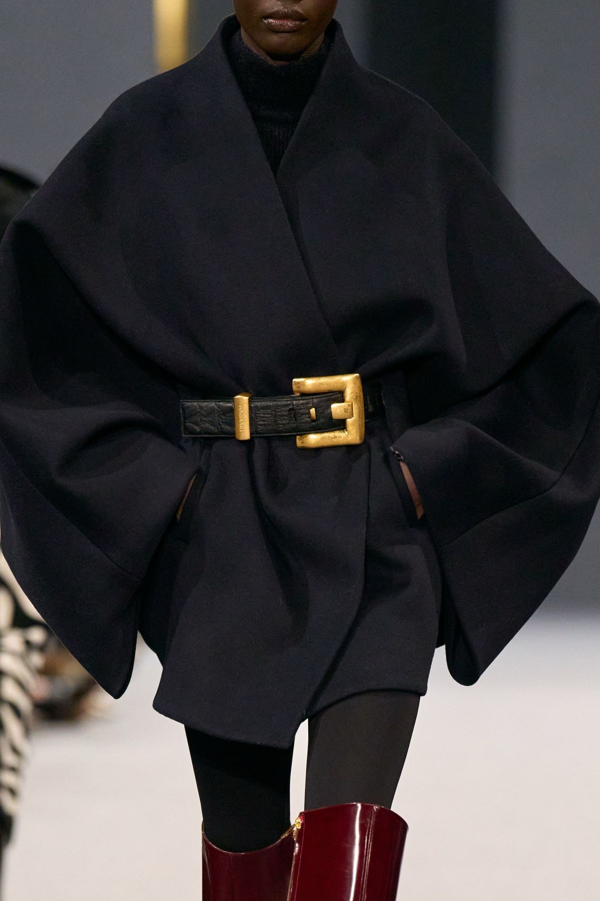 Корсетный ремень + пальто с объёмными плечами = вау-эффект