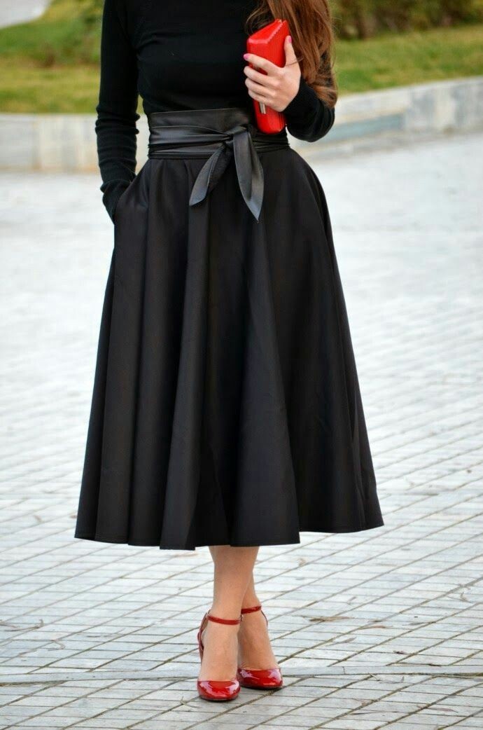 На высокой талии — с юбками-карандашами, плиссе, миди