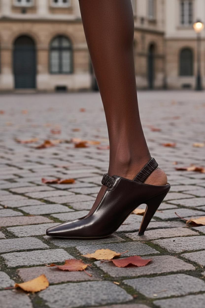 Туфли в стиле 60-х и 70-х возвращаются — каблуки-рюмки, круглые носы, сатиновые текстуры. Всё это создаёт настроение ретро-героини из французского фильма. Только вместо багета — кофе навынос.