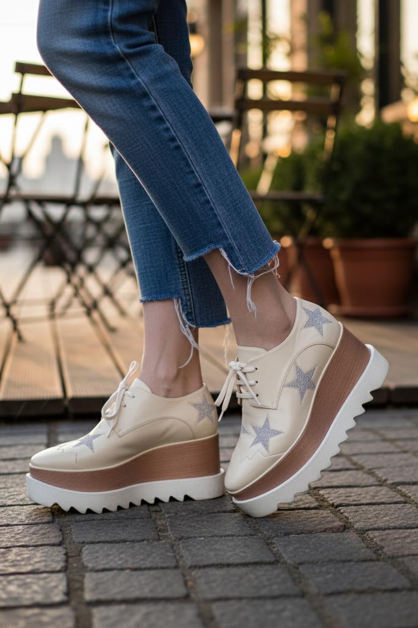 Туфли на платформе — привет из 70-х. Они добавляют роста, не отнимая комфорта. Могут быть яркими или минималистичными, кожаными или тканевыми. Сочетаются с лёгкими платьями и даже с брючными костюмами.
