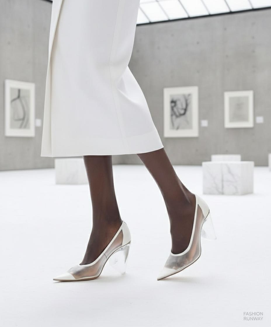 Каблуки теперь могут быть самыми разными: прозрачными, гнутыми, геометрическими. Такая обувь превращается в арт-объект — даже если ты просто идёшь за хлебом.