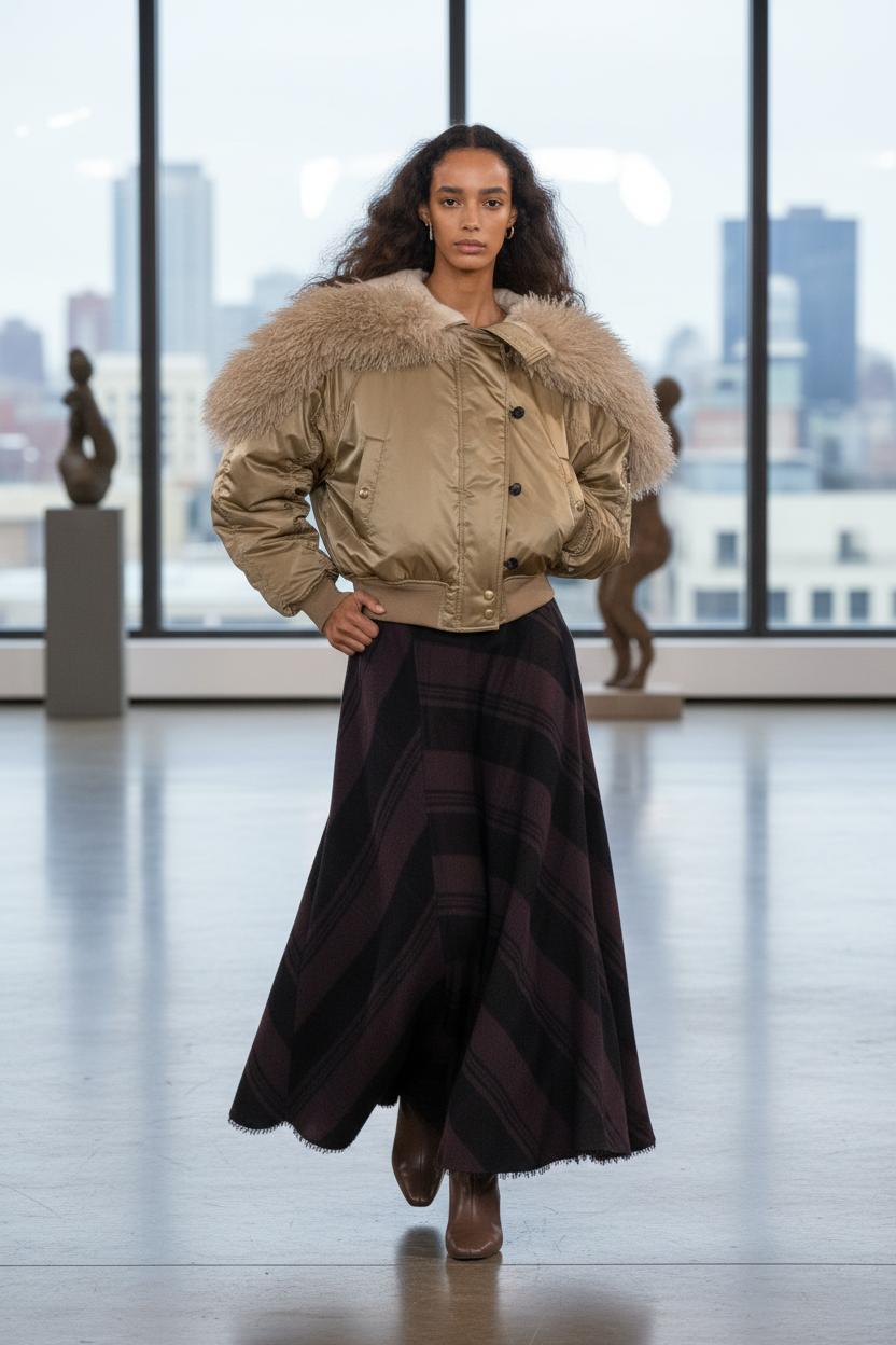 Совет по росту: мини-девушкам лучше избегать длины ровно «по икру» — она визуально «режет» силуэт. Лучше выбрать миди или чуть выше колена и добавить вытянутый шарф. Высоким — смело макси, особенно если обувь с массивной подошвой.