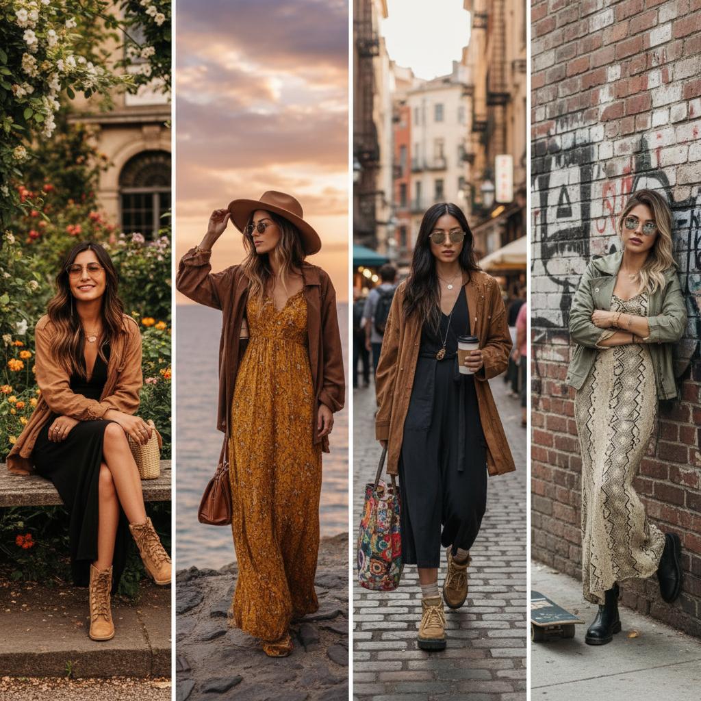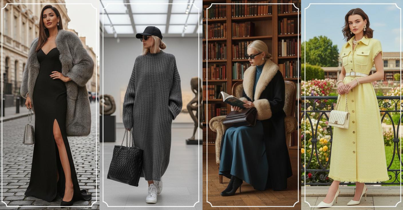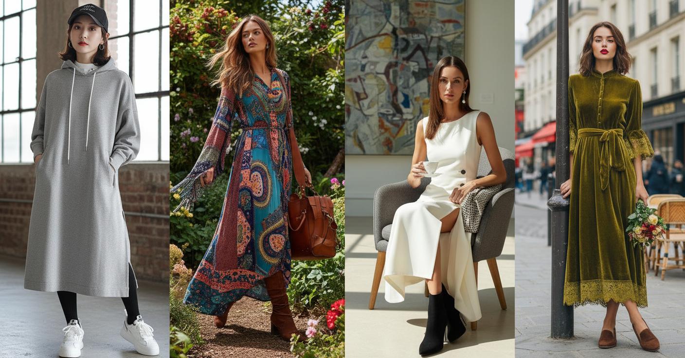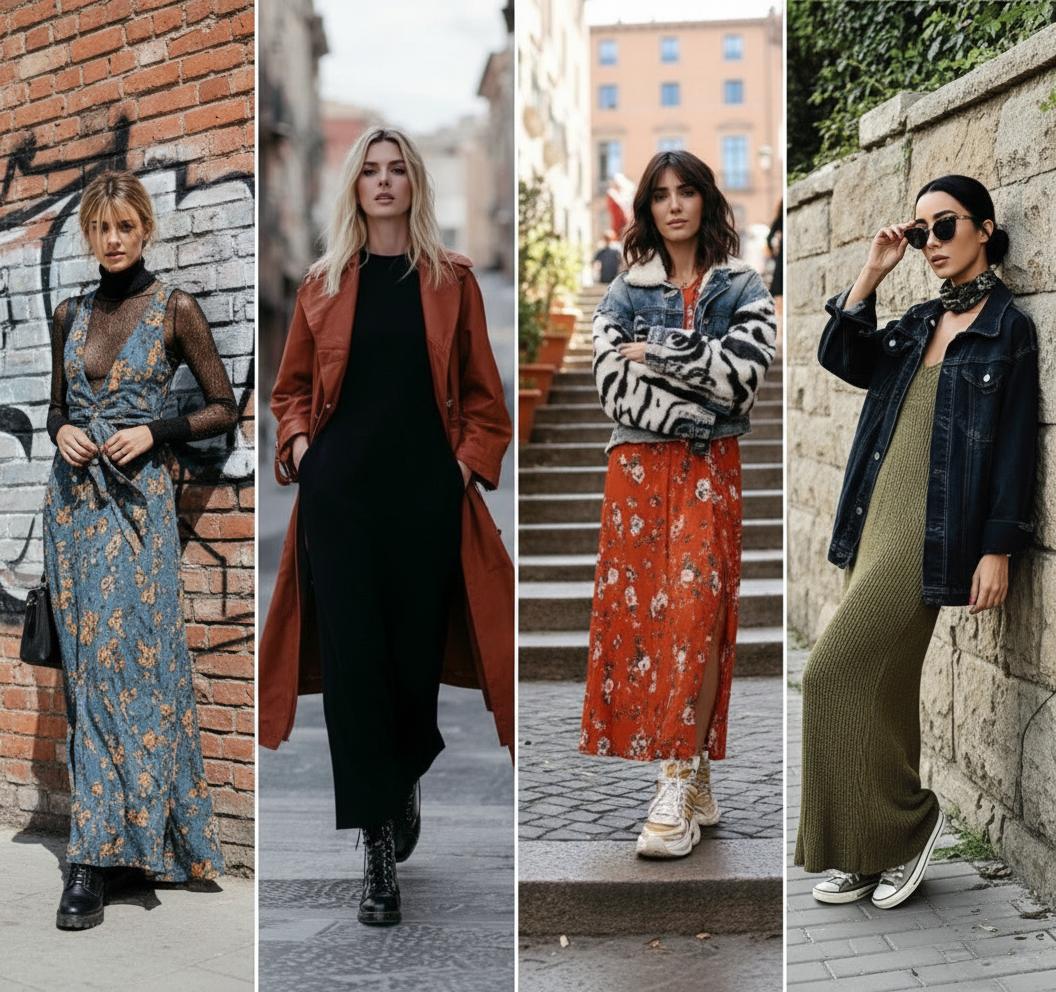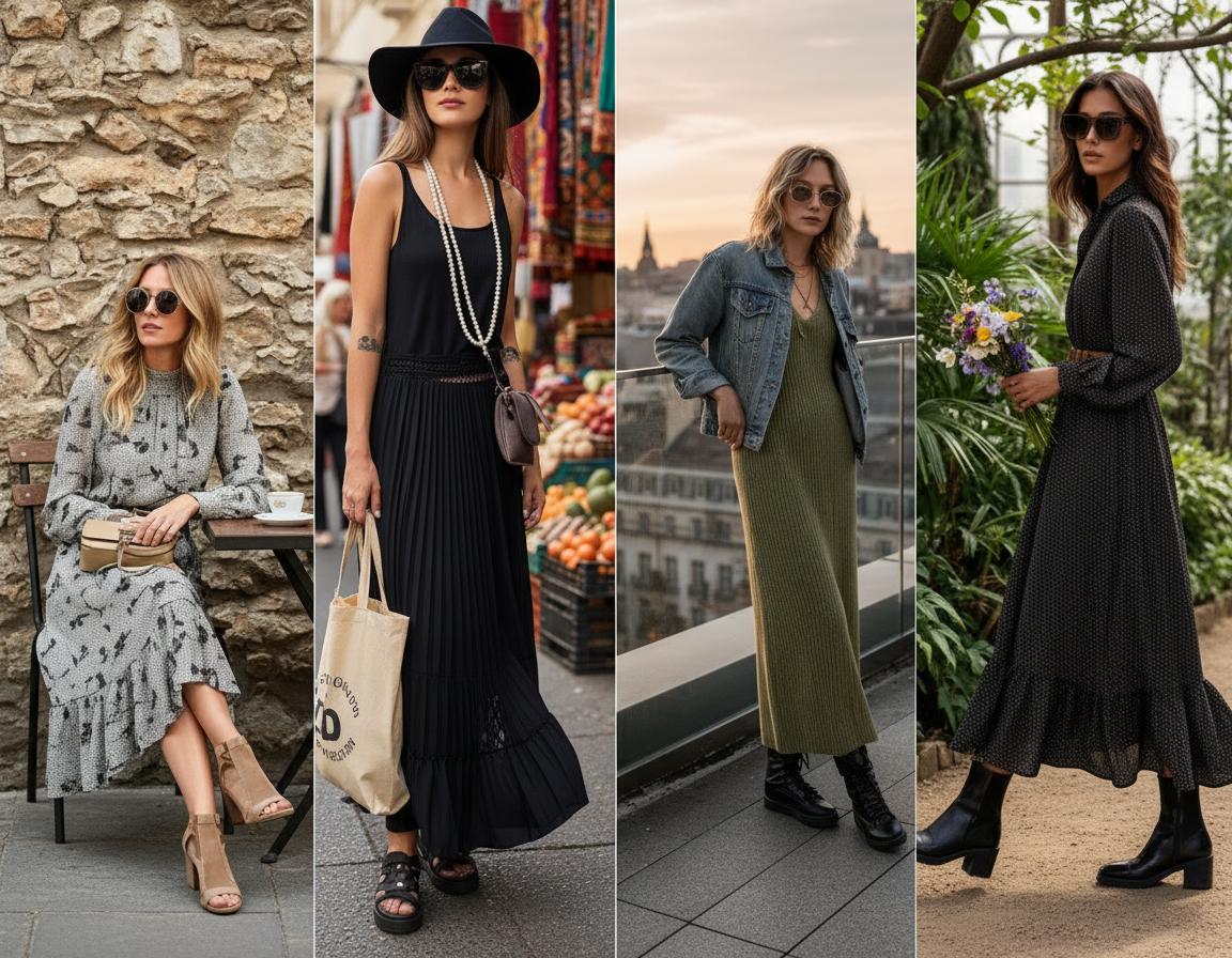 Одно и то же длинное платье можно носить по-разному. Меняя обувь, верх и аксессуары, вы получаете совершенно новые образы. Это удобно, экономно и даёт простор для экспериментов. Рассмотрим четыре популярных направления.