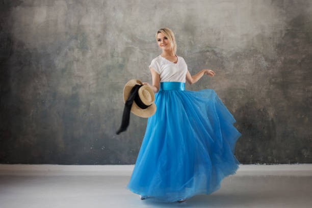 Выбирая оттенок голубого, учитывайте не только цвет, но и фактуру ткани. Лёгкие ткани, такие как шифон и шёлк, делают голубой ещё более воздушным, тогда как плотные материалы придают ему строгости.