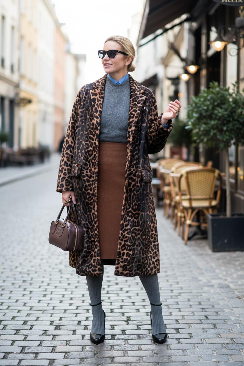 С какими принтами он дружит? Клетка (гленчек, тартан) в серо-коричневой гамме, тонкая полоска, леопард в мелком масштабе.