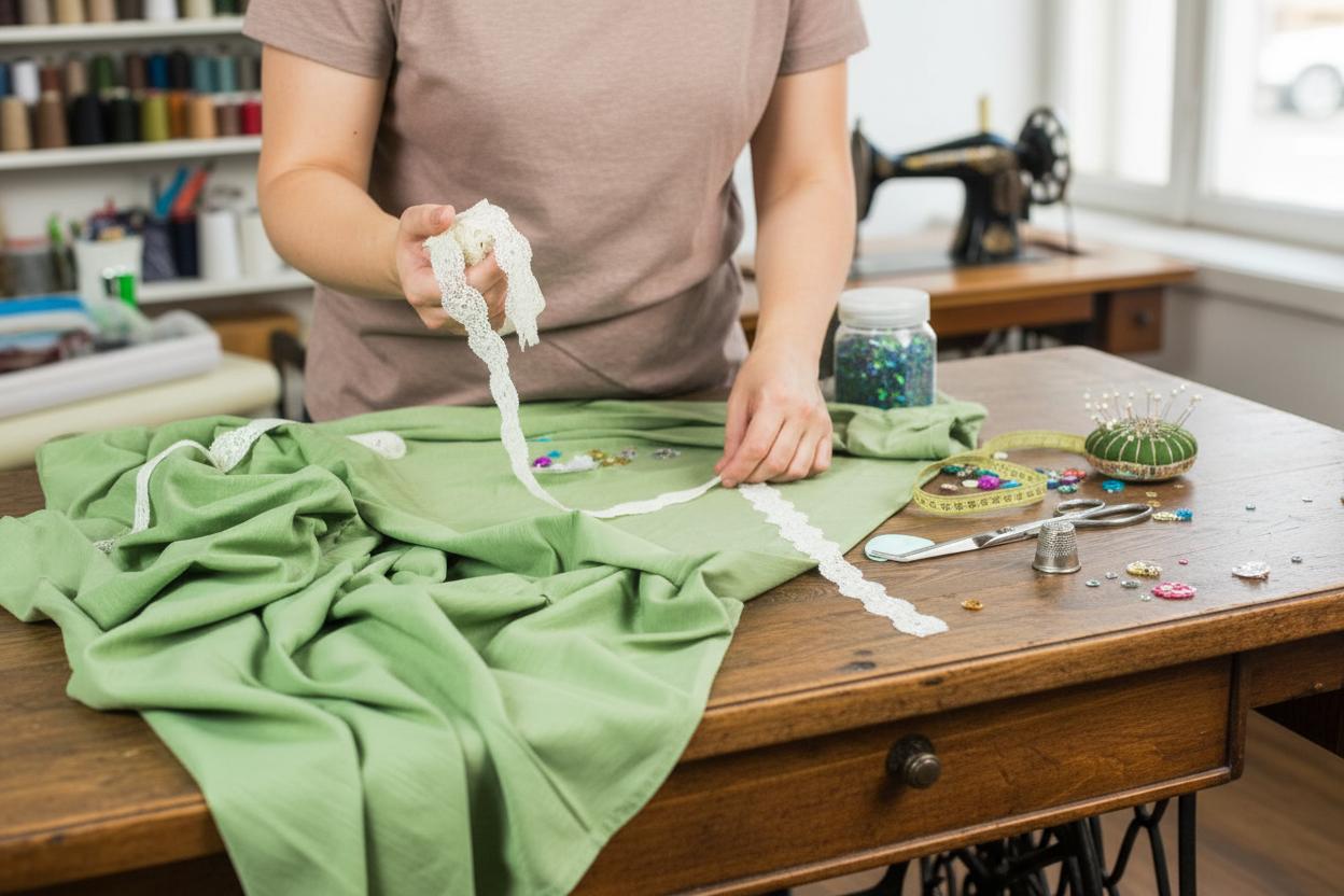 Ленты используются для сборки ткани, особенно в случаях, когда нужно создать пышные или драпированные элементы. Лента, прошитая вдоль края ткани, позволяет равномерно собрать её в складки, добавляя объем и текстуру изделию. Это часто применяют в вечерних платьях и блузках.
