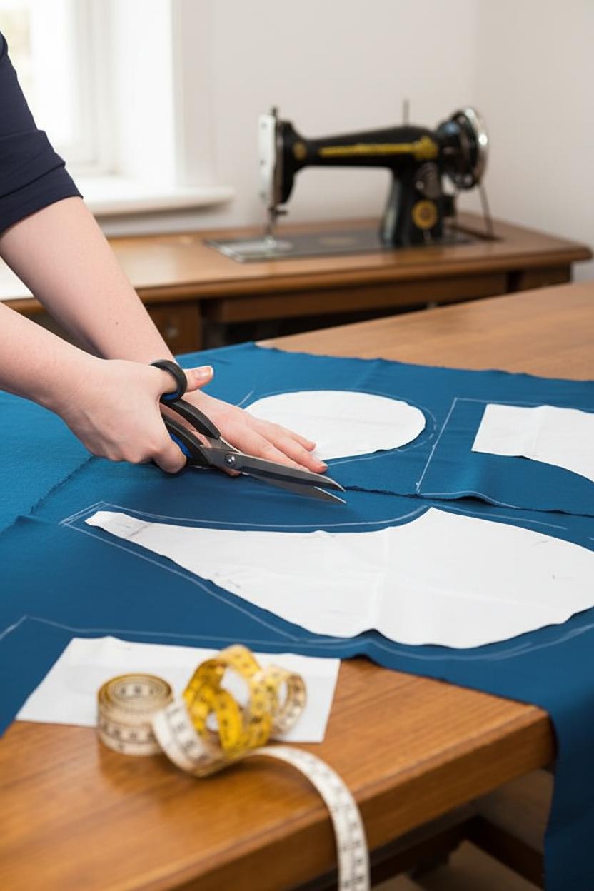Правильный раскрой. Перед началом кроя важно разложить ткань на ровной поверхности, чтобы избежать смещения слоёв. Ткань легко тянется, поэтому необходимо использовать острые ножницы или специальный роликовый нож, чтобы добиться чёткого и аккуратного разреза.