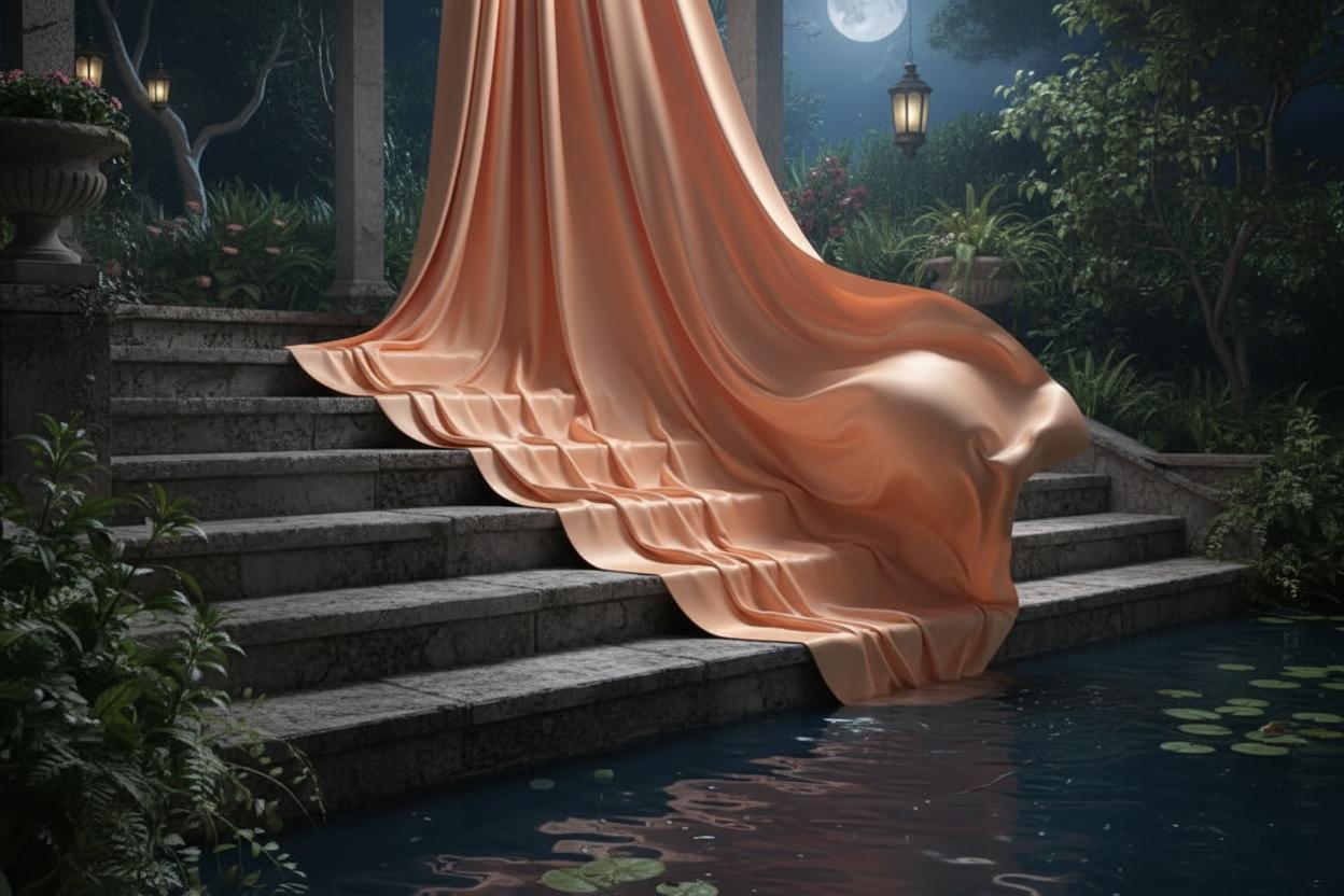 Трикотажный шёлк. Обладает поверхностью-глянцем, не очень плотной структурой. Используют для пошива вечерних нарядов.