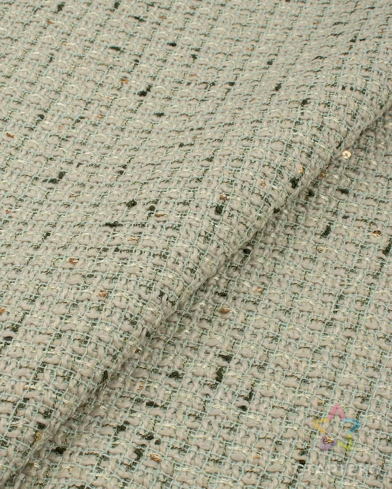 Ткань букле с люрексом и пайеткой цвета мультиколор (фисташковый / золото)