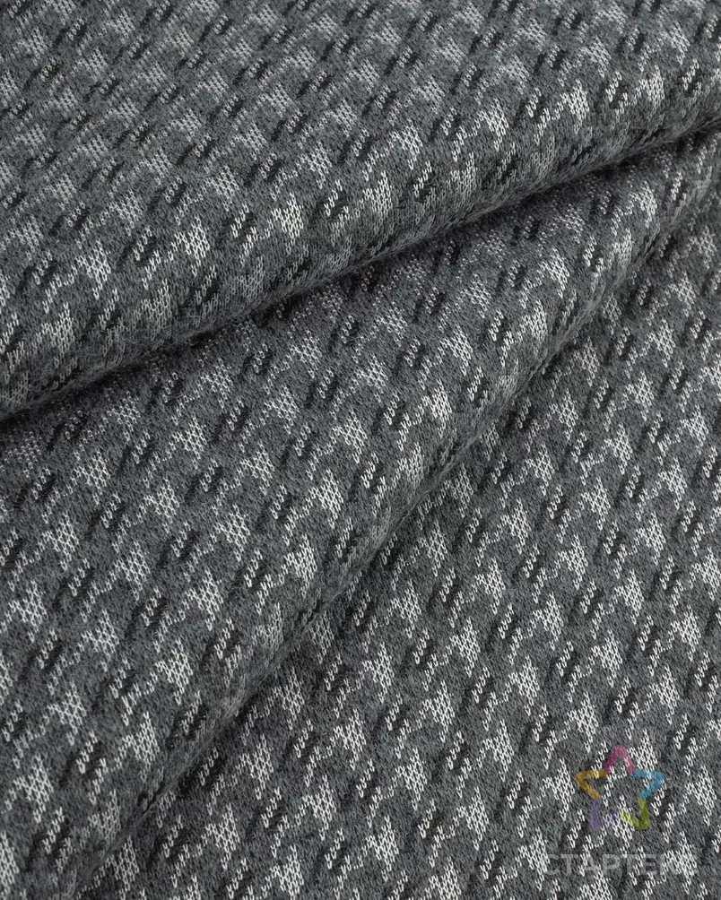 Ткань джерси жаккард "Гусиная лапка" цвета мультиколор (графит / черный / светло-серый)