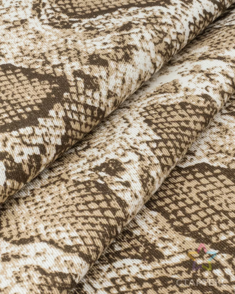 Ткань джинс стрейч "Мали" принт цвета мультиколор (бежевый / коричневый)