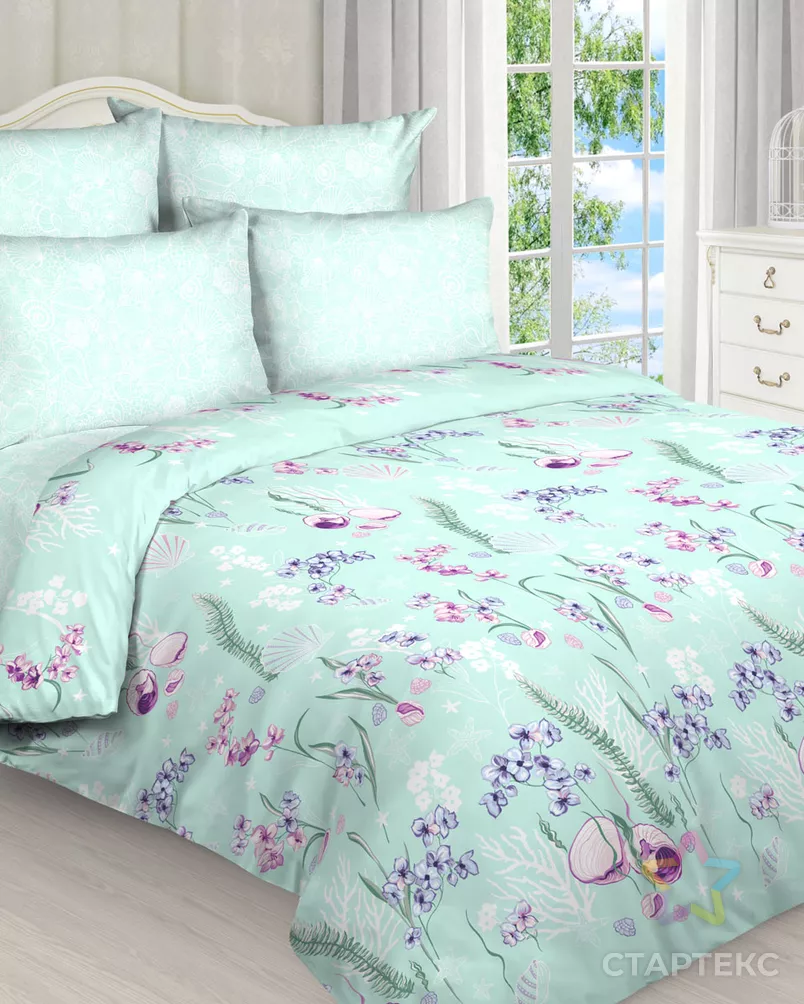 КПБ ТМ Эстелика евро поплин рис.9212/9213 голубого цвета