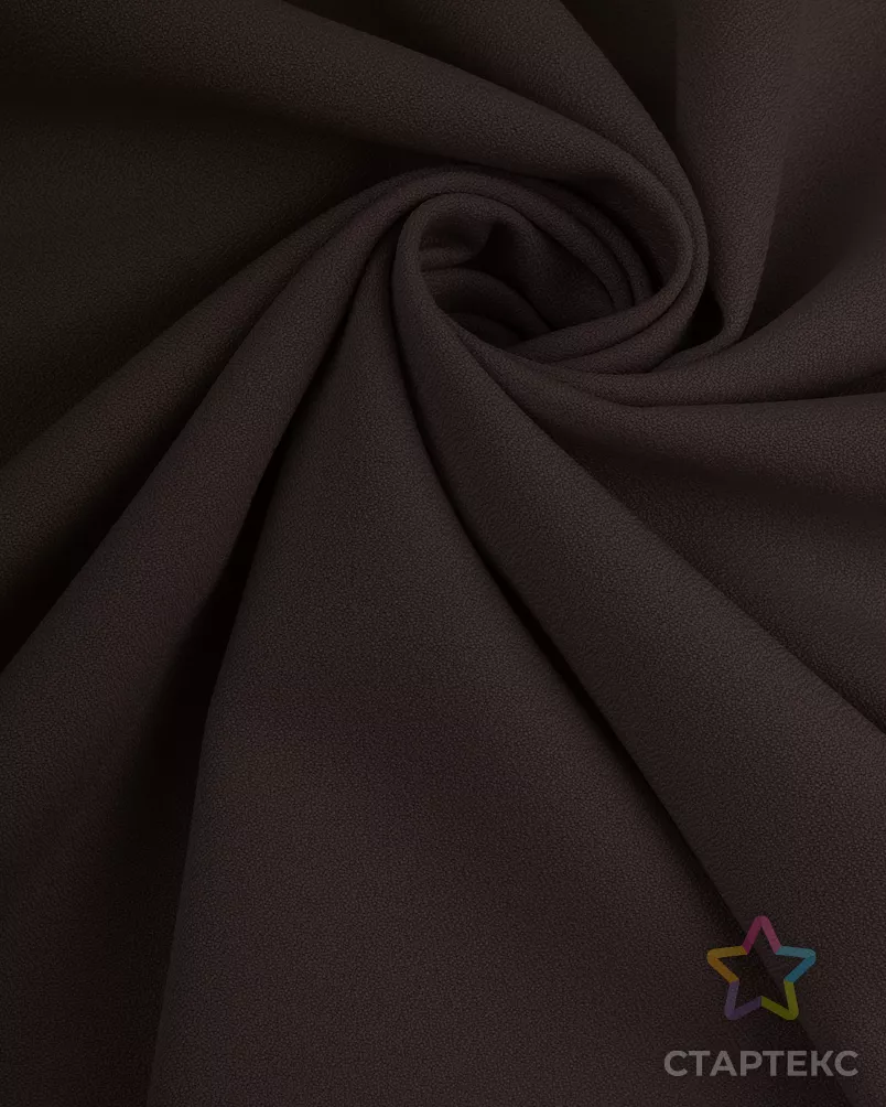 Креп стрейч "Булгари" — это тонкая и прочная ткань с эластичными свойствами, что делает её идеальным выбором для создания различной женской одежды, включая платья, юбки и костюмы. Материал имеет гладкокрашеную матовую поверхность с мелкозернистой фактурой, что придаёт изделиям особую изысканность. Благодаря насыщенному шоколадно-коричневому цвету, ткань подходит для создания как повседневных, так и вечерних нарядов.