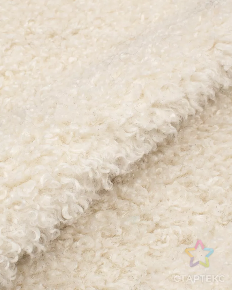 Ткань выполнена в молочном цвете и имеет плотность 725 г/м², что обеспечивает её долговечность и теплоизоляцию. Ворс длиной в 10 мм создаёт приятные тактильные ощущения и придаёт изделиям эффектный внешний вид. Ширина полотна составляет 180 см, что позволяет экономично расходовать его при раскрое и пошиве.