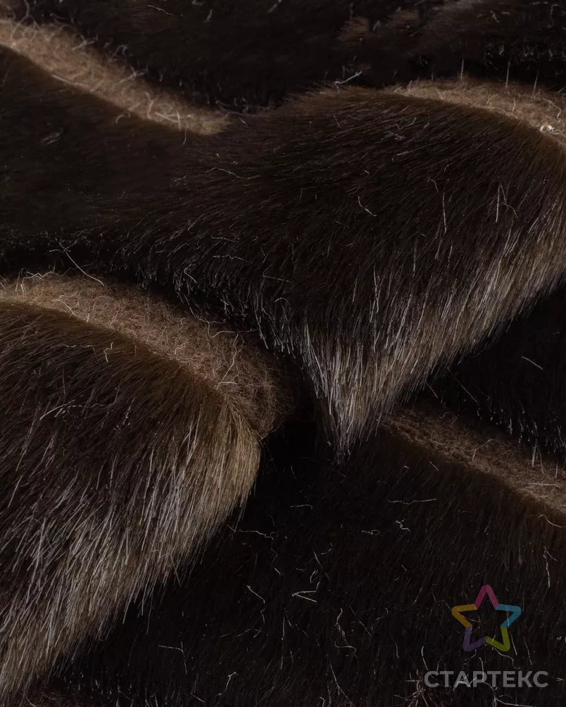 Искусственный мех "Норка под соболь" представляет собой коричневое полотно с трикотажной основой, предназначенное для пошива верхней одежды, театральных костюмов и аксессуаров. Полотно отличается мягким ворсом высотой 2,5 см, который обладает характерным блеском и рельефной отделкой в виде полос шириной 6,5 см. Он прекрасно подходит для создания зимней и демисезонной одежды, включая куртки, пальто и головные уборы.