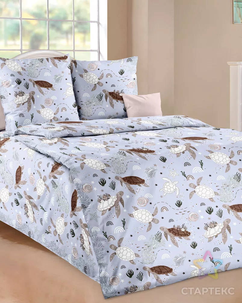 Морские обитатели 1 гол КПБ 1,5 спал 2 нав ПЕРКАЛЬ арт 1100Х голубого цвета