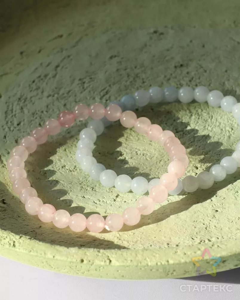 Набор браслетов 2 шт. Шар №6 «Кварц розовый и Аквамарин» розового цвета (голубой) Арт. СМЛ0010221962