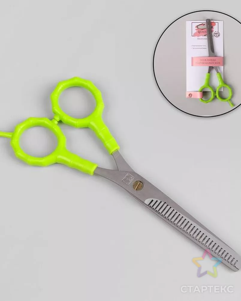 Ножницы филировочные с упором, лезвие 7 см, цвет салатовый/серебряный серебристого цвета