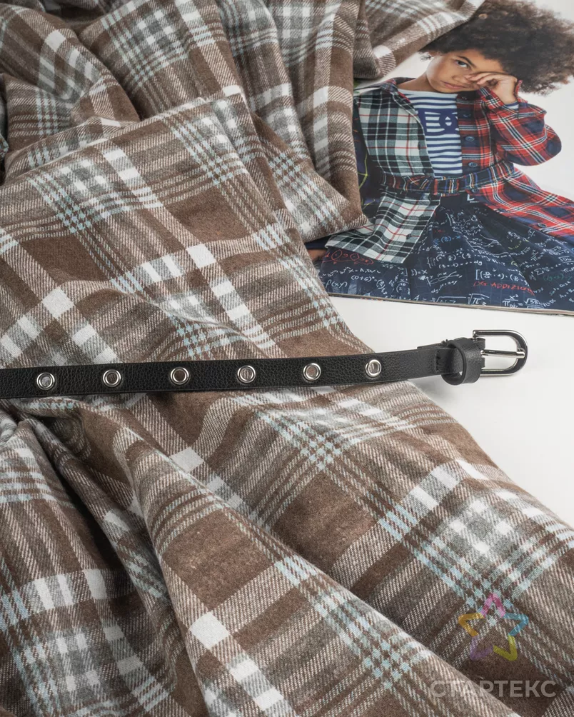 Ткань рубашечная фланель клетка "Фуле" цвета мультиколор (коричневый / серый / белый)