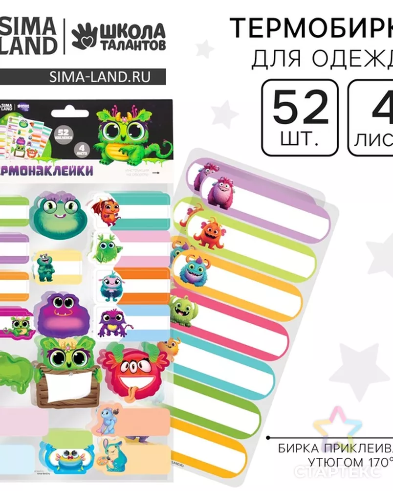 Термобирки для одежды. Набор именных термонаклеек для маркировки детских вещей «Яркие монстрики», 52 шт разноцветный
