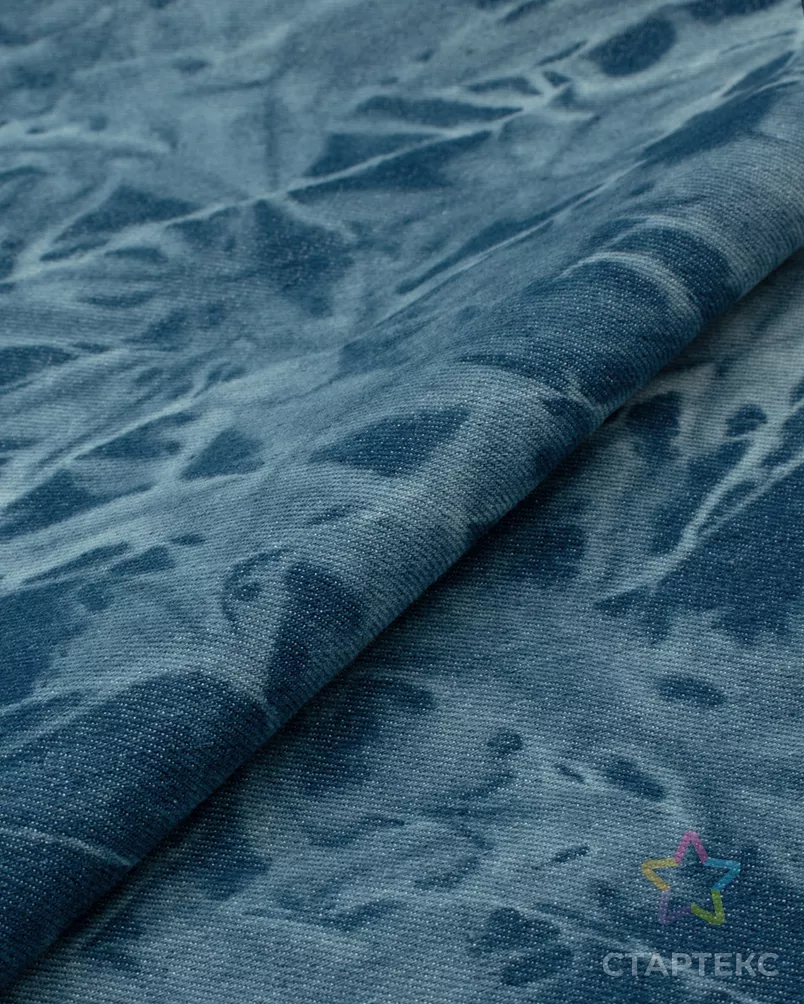 Ткань джинсовая стрейч «Варенка» цвета мультиколор (синий / голубой)